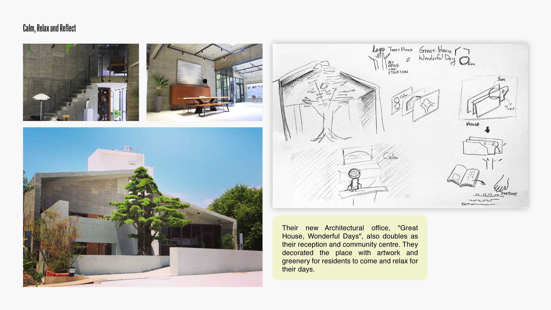 The Brand book is an extension of their new office experience, " Great House Wonderful Days." We Design the book to reflect the simplicity of the building by focusing on the contrast of the texture, light and shades, objects and negative space to capture the pureness of the "Great House, Wonderful Days."